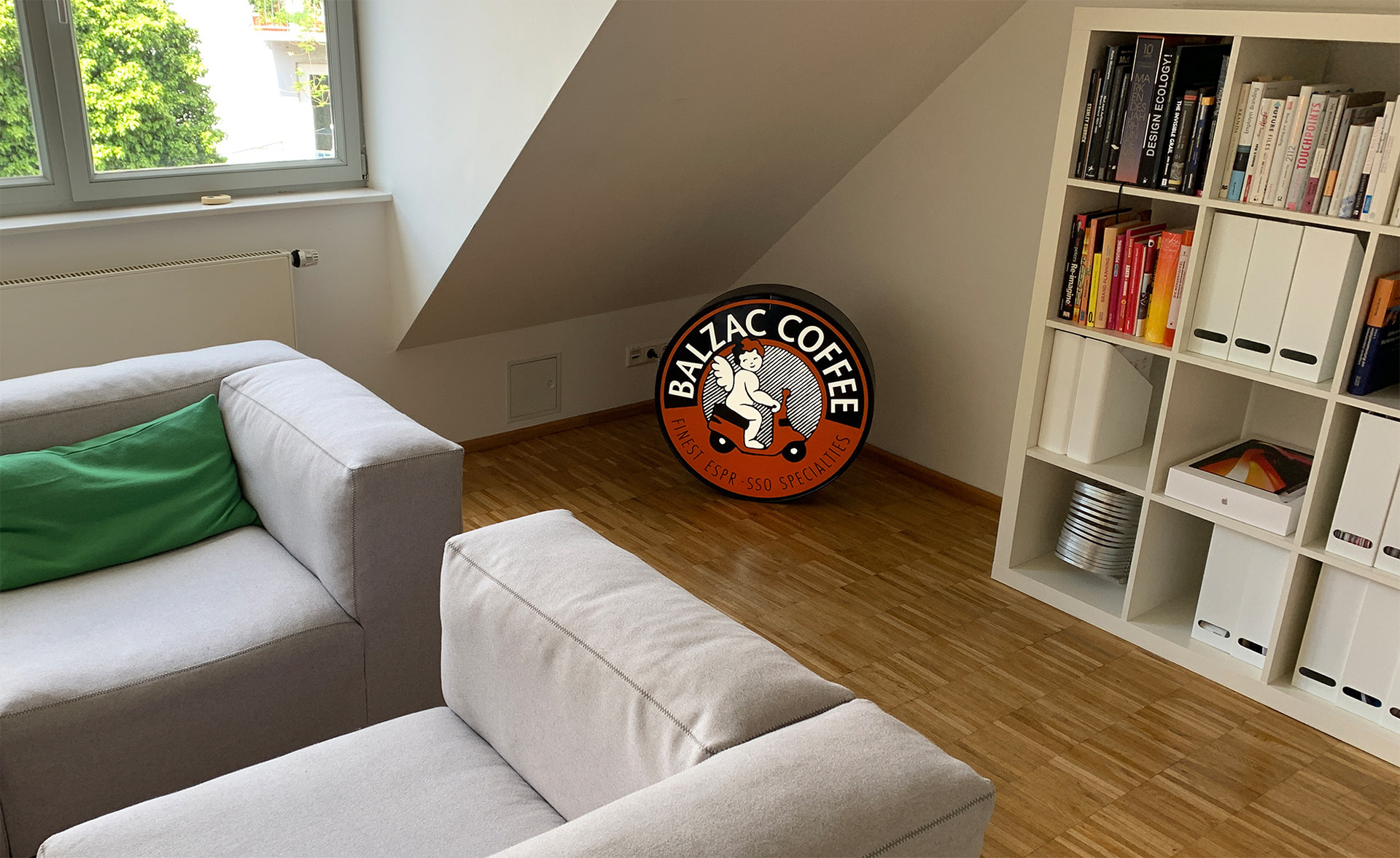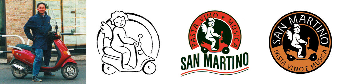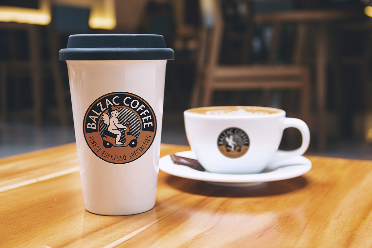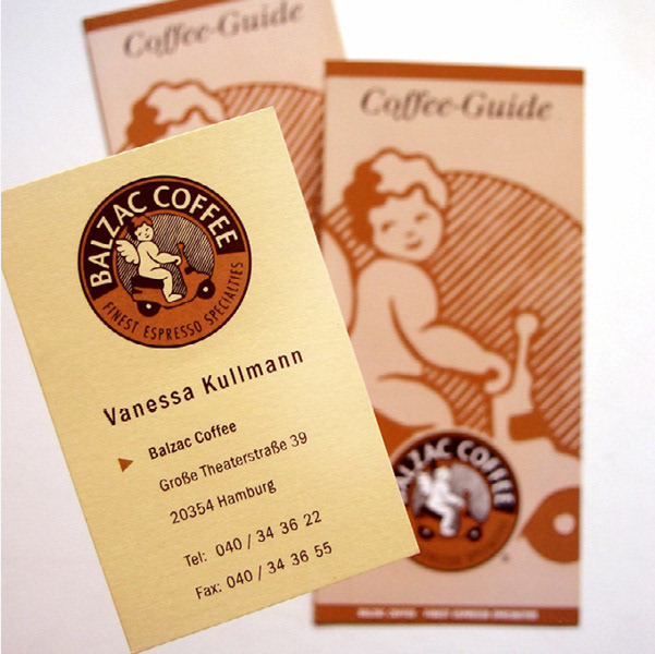 Ursprünglich hatte ich das Logo für einen Pasta-Imbiss „San Martino“ gestaltet, welcher jedoch nie umgesetzt wurde. Bei der Logo-Präsentation war jedoch die Gründerin von Balzac Coffee anwesend, die auf der Suche nach einem passenden Logo für ihren ersten Coffeeshop in der Hamburger Esplanade war. Aus „San Martino“ wurde „Balzac Coffee“, mit einem italienischen Engel auf einer Vespa, französischem Namen und amerikanisch anmutenden Label-Design. Manchmal führen eben auch Umwege zum Erfolg!